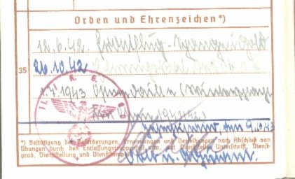 Soldbuch (entry dated 26.10.42 pictured left) and Wehrpass (corresponding