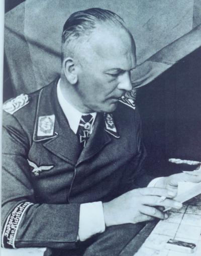 Generalfeldmarschall Wolfram Frhr. von Richthofen wears the  “Jagdgeschwader Frhr. v. Richthofen Nr. 1 1917/18” cuffband indicating service with that unit during World War 1.