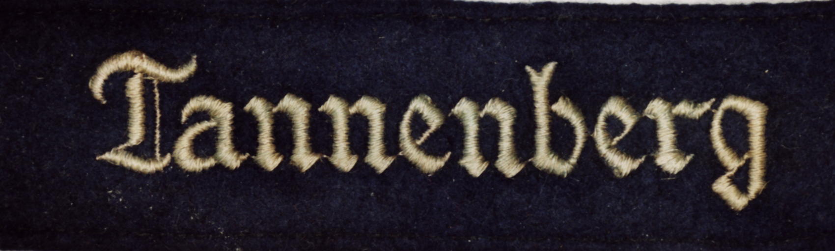 The standard cuffband bore the inscription “Tannenberg” in Gothic script lettering on a dark blue band and was worn on the lower right sleeve. The title commemorated the great encirclement victory at Tannenberg in East Prussia in August 1914.