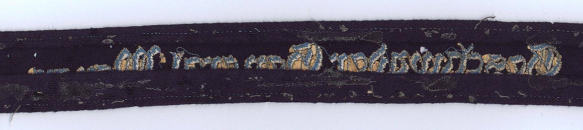 A variant of the standard cuffband enlarge the pics for an examination of the embroidery and backing material ...